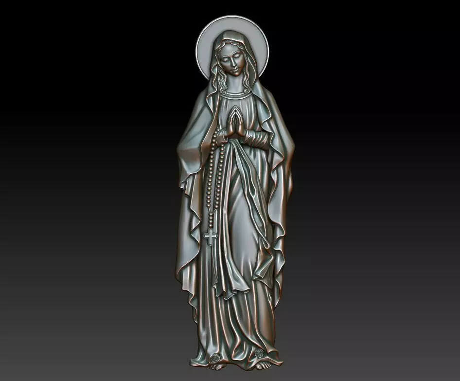 Our Lady of Lourdes (Notre-Dame de Lourdes) 3d relief for cnc-sistems and 3d printing. Can be used in the production of souvenirs, furniture, jewelry. Files in stl format, for import to artcam, rhinoceros, 3ds max, etc. You can scale the model to any size you need.