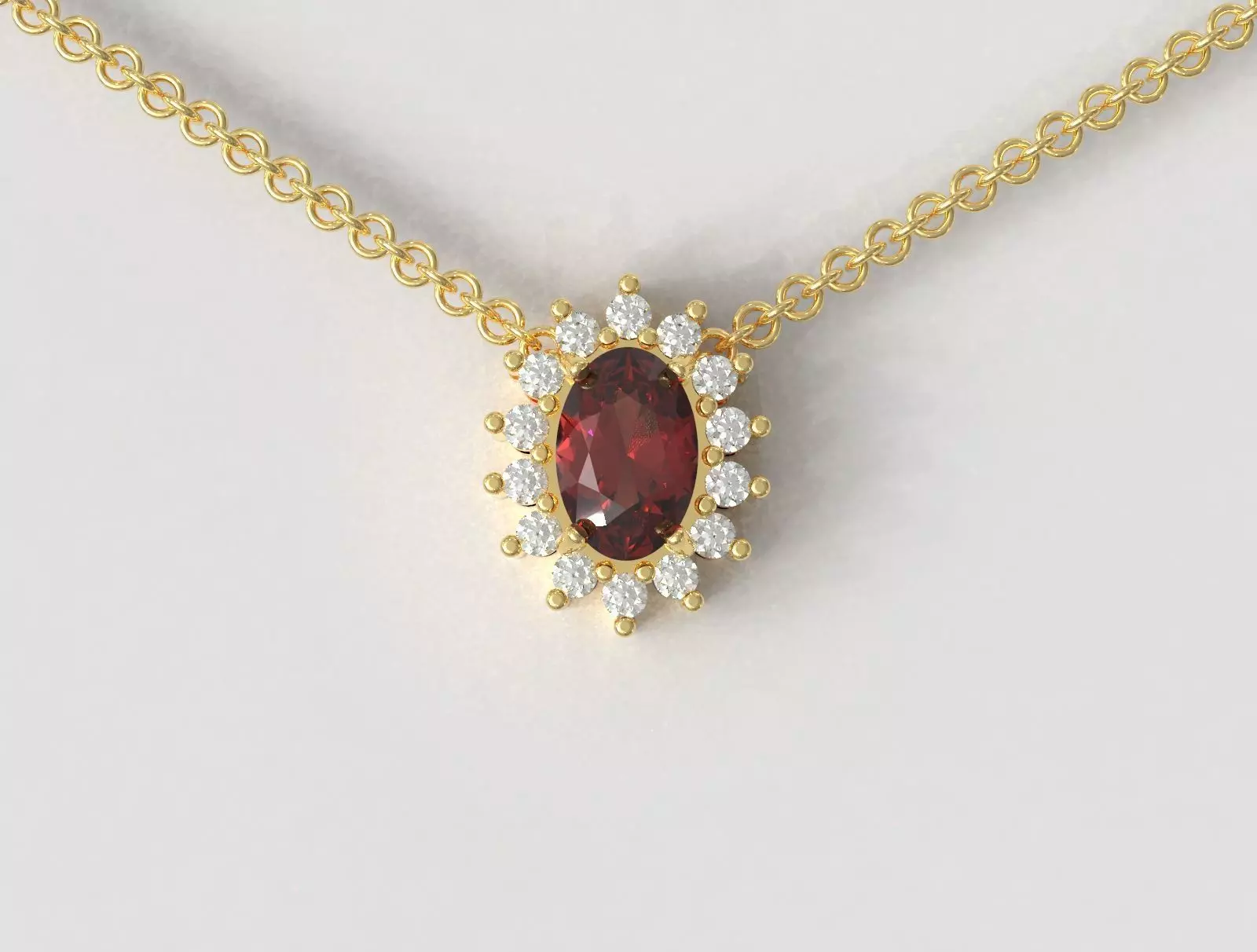 Gemstone and Diamond sizes and quantity: 1 Oval Gemstone (6mmx4mm) and 14 diamonds (1.30mm).