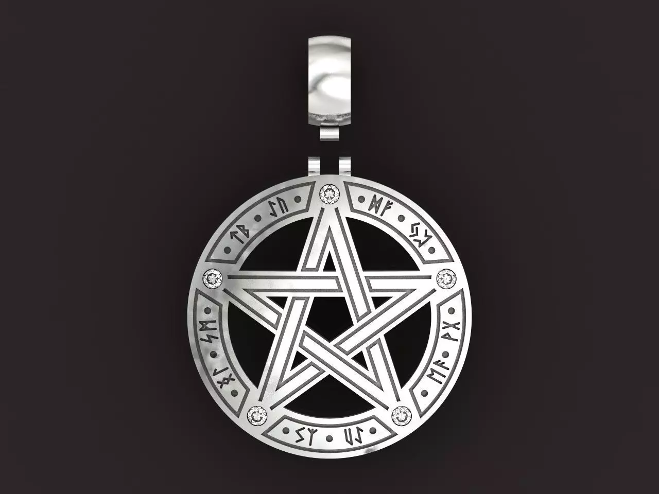 Pagan Wiccan Pentacle Pentagram Star Pendant with Runes 1425 3D print model