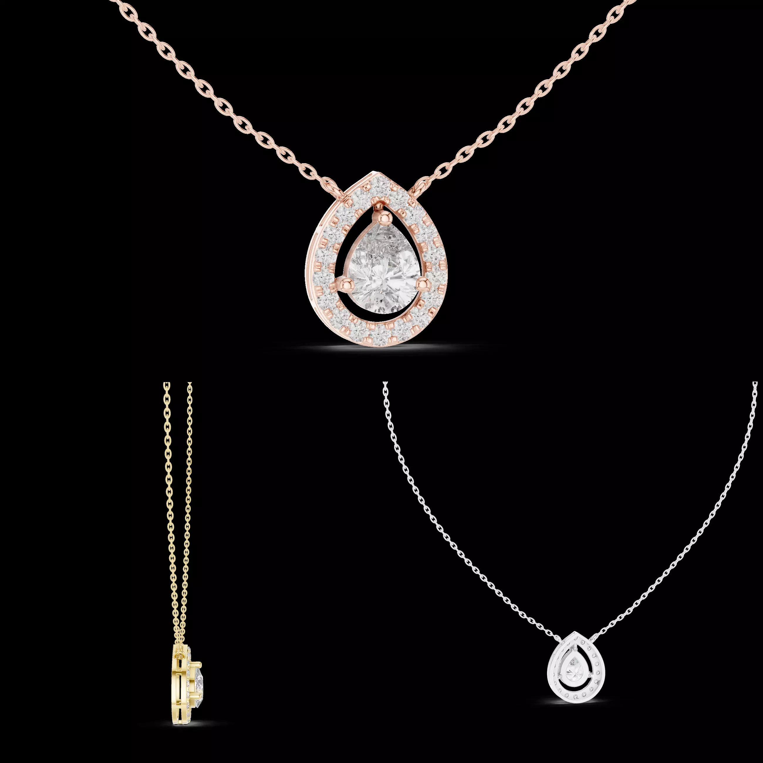 Designed strictly as a pendant, not a necklaceAccurate pear cut and halo diamond setting dimensionsOpen structure for enhanced light and brillianceClean and precise CAD geometry suitable for castingBalanced weight for comfortable daily wearManufacturing-friendly thickness and tolerancesEasy customization for stone size, metal type, or halo density