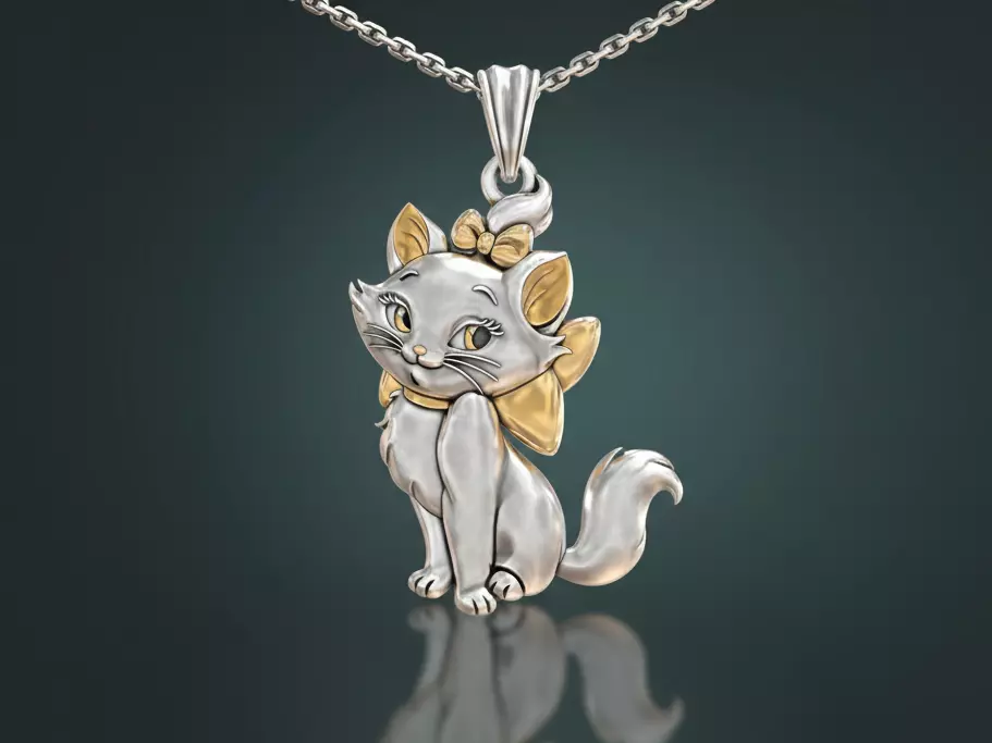 A print-ready 3D model of the Marie the Cat pendant for creating elegant jewelry pieces. The model is split into 4 parts and is fully prepared for 3D printing and CNC machining.