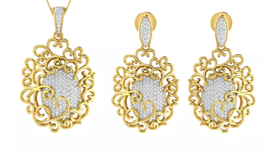 Pendant Earring Set 3dm STL OBJ FBX Render Details 3D print model