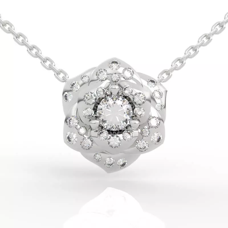 Small can sell big—when it’s designed to perform.The Dainty Rose Diamond Halo Pendant Studs 3D model captures the quiet drama of a blooming rose in a compact, production-ready form. Layered petals frame a luminous center, while triple halo accents create a refined aura of sparkle—never loud, always persuasive at retail.