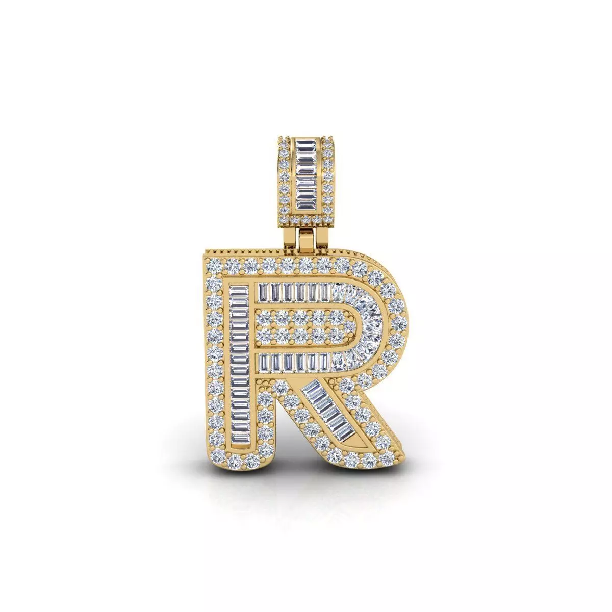 R Capital Latter With Baguette Diamond 3d Model and Render 3D print model