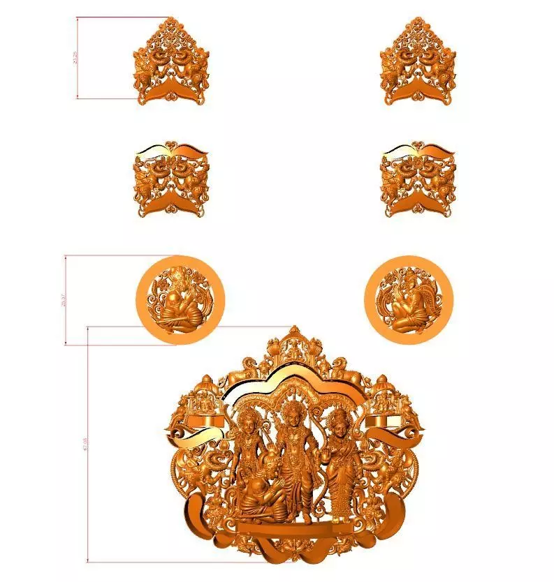 Prakash, this is a very strong premium temple composition — high-detail, multi-figure, ornamental Hindu panel. This type of design performs extremely well when positioned as a luxury temple relief / premium jewelry centerpiece.