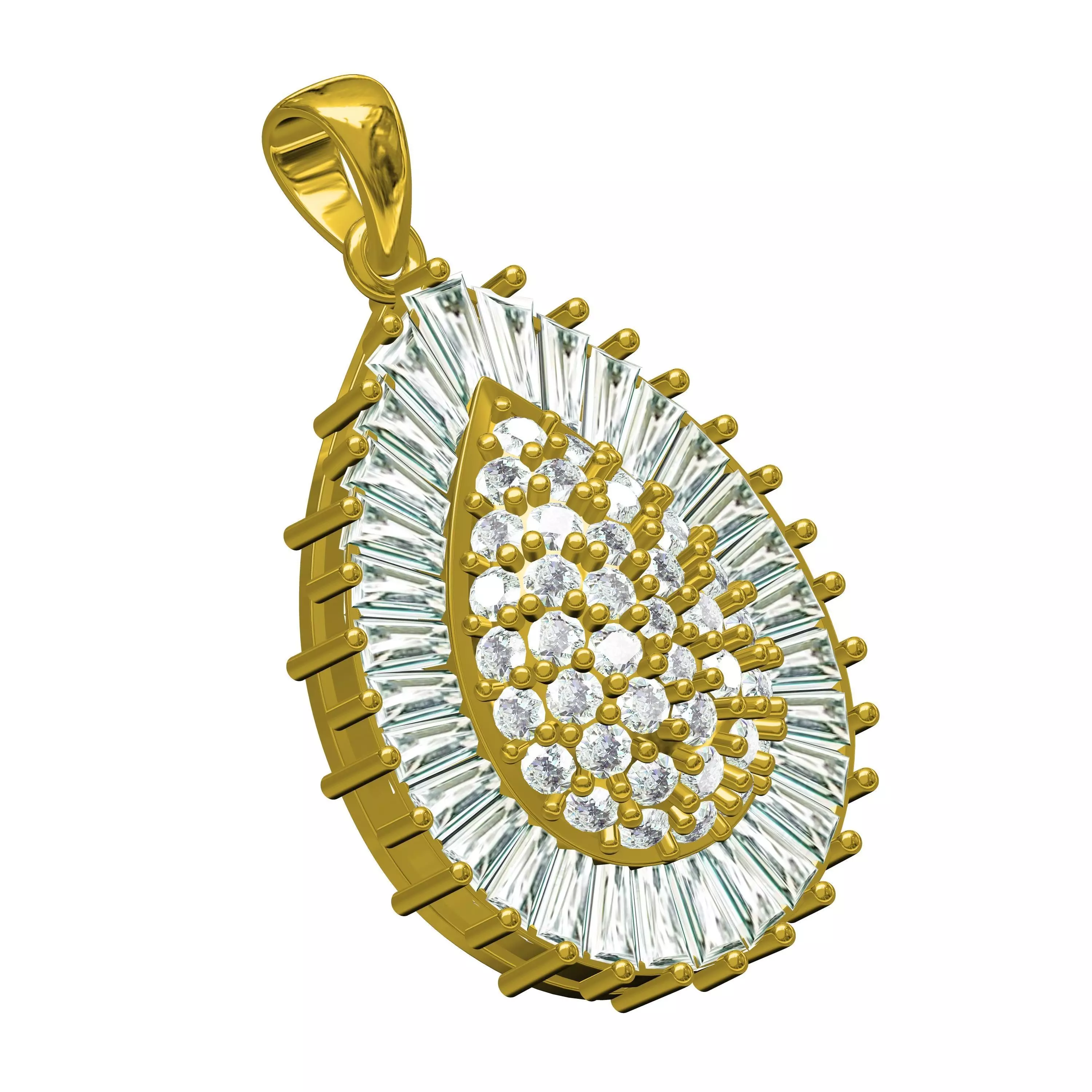 Round Diamond Baguette Halo Drop Shaped Pendant
