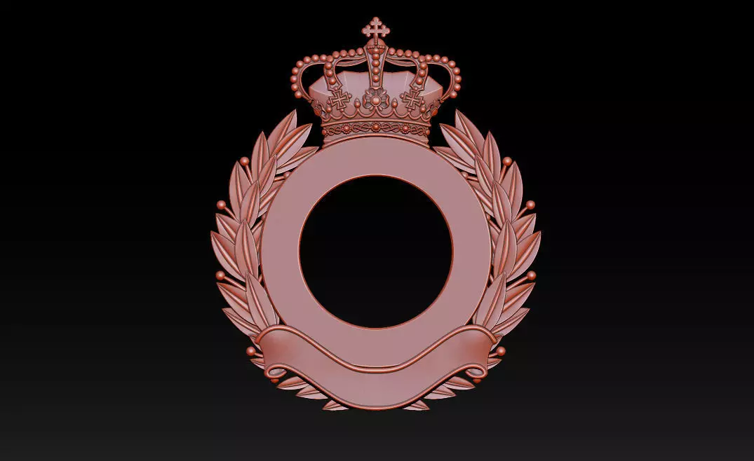 Royal Crown Laurel Wreath Frame 3D Relief - CNC & 3D Print - STL, OBJ, ZTL (Imperial Crown Circular Frame for CNC Wood Carving, Medals, and Personalization)