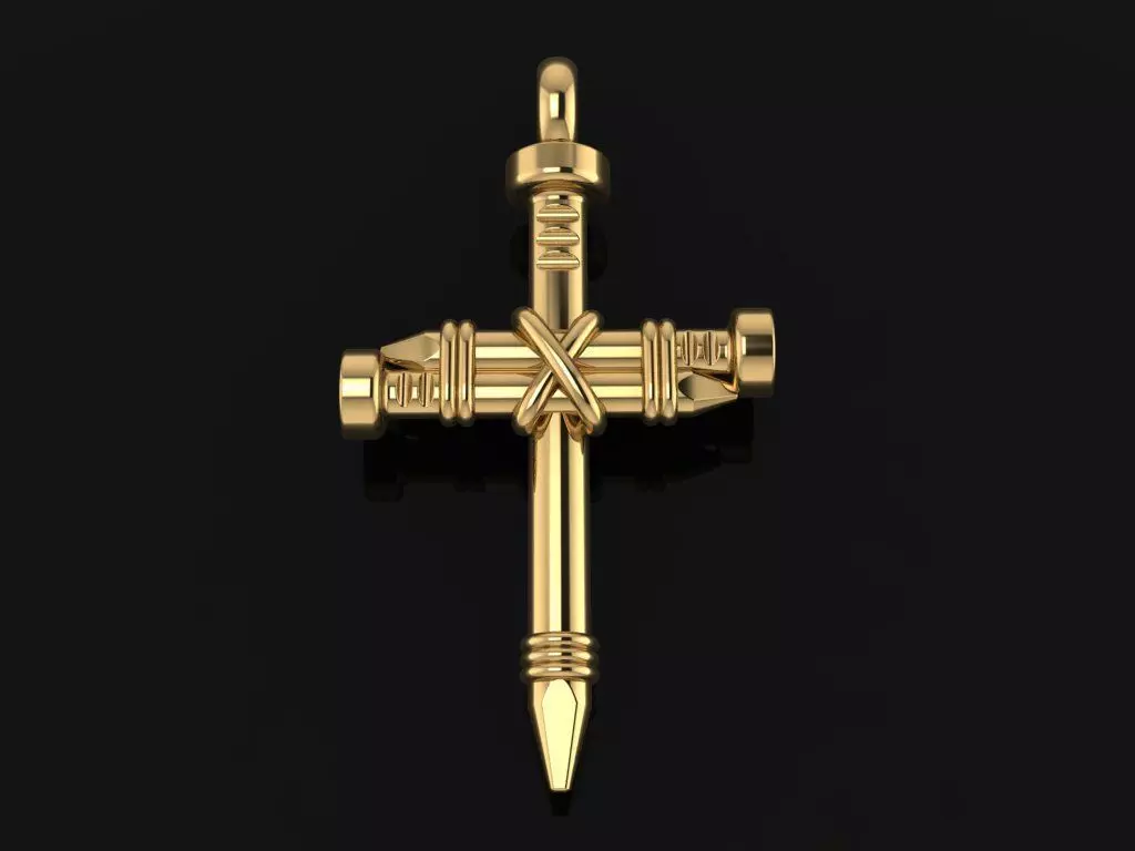 Rustic style Nail Cross Pendant Mid Size