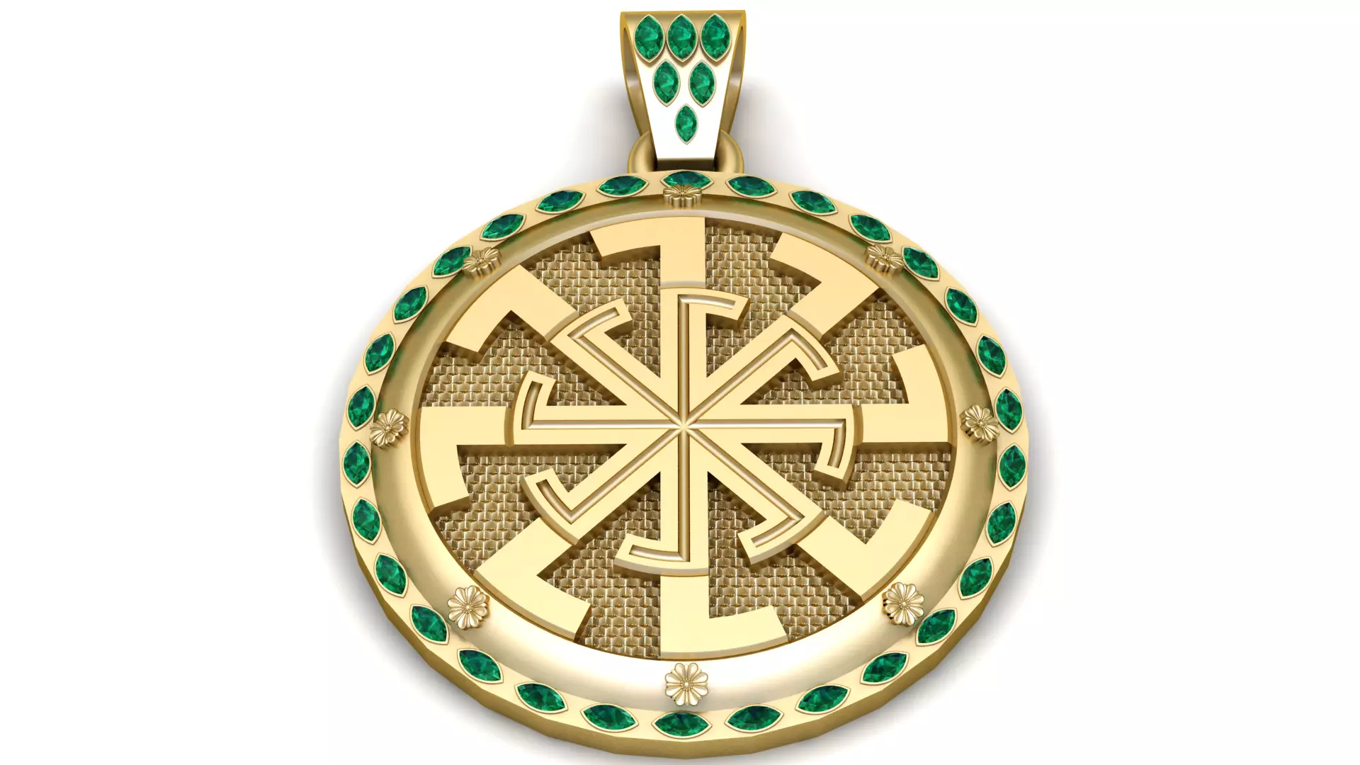 This exquisite 3D printable Sacred Spiral Pendant combines intricate design with spiritual symbolism. Crafted with a golden finish, the pendant features a central spiral pattern, complemented by a ring of emerald-like gemstones. The gemstone accents add a touch of elegance and vibrancy, enhancing the overall allure of the pendant. Perfect for those who appreciate spiritual symbols and unique, high-quality jewelry designs.