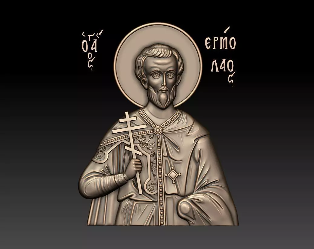 3d model Orthodox icon Saint Saint Ermolai of Nicomedia( Ερμόλαος, Hermolaus of Nicomedia, Yermolai) . For milling on CNC machines or 3d printing. Can be used in the production of souvenirs, furniture, jewelry. Files in stl format, for import to artcam, rhinoceros, 3ds max, etc. You can scale the model to any size you need.For milling on CNC machines or 3d printing. Can be used in the production of souvenirs, furniture, jewelry. Files in stl format, for import to artcam, rhinoceros, 3ds max, etc. You can scale the model to any size you need.