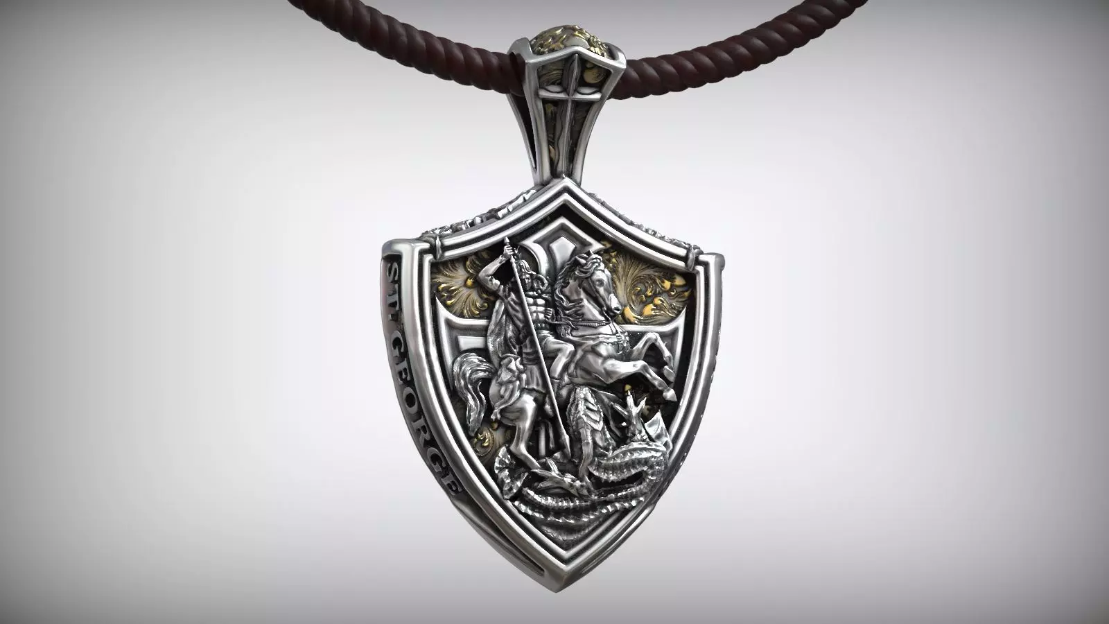 Saint George the Victorious and the Dragon Shield Cross Symbol Christian Pattern Pendant