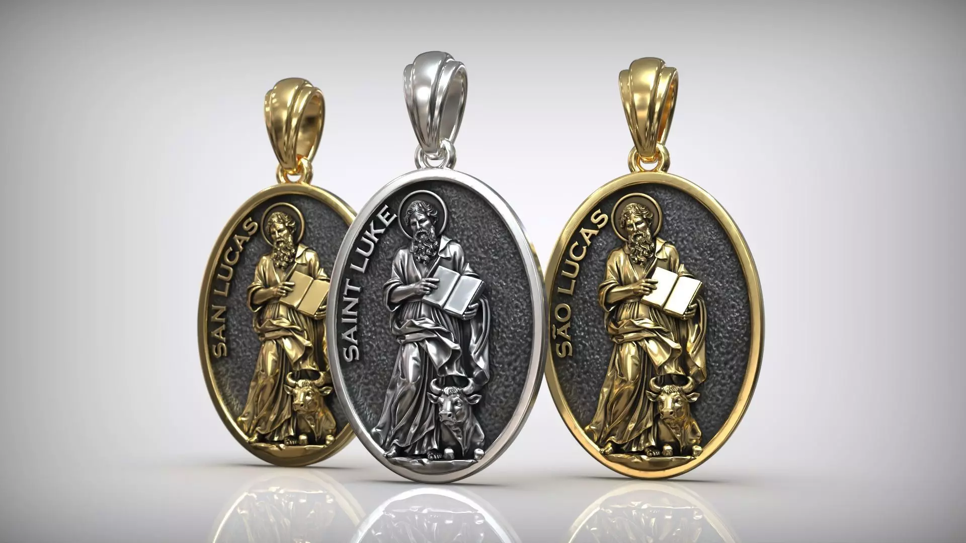 Saint Luke Pendant San Lucas / São Lucas Oval Medal Religious Jewelry Design