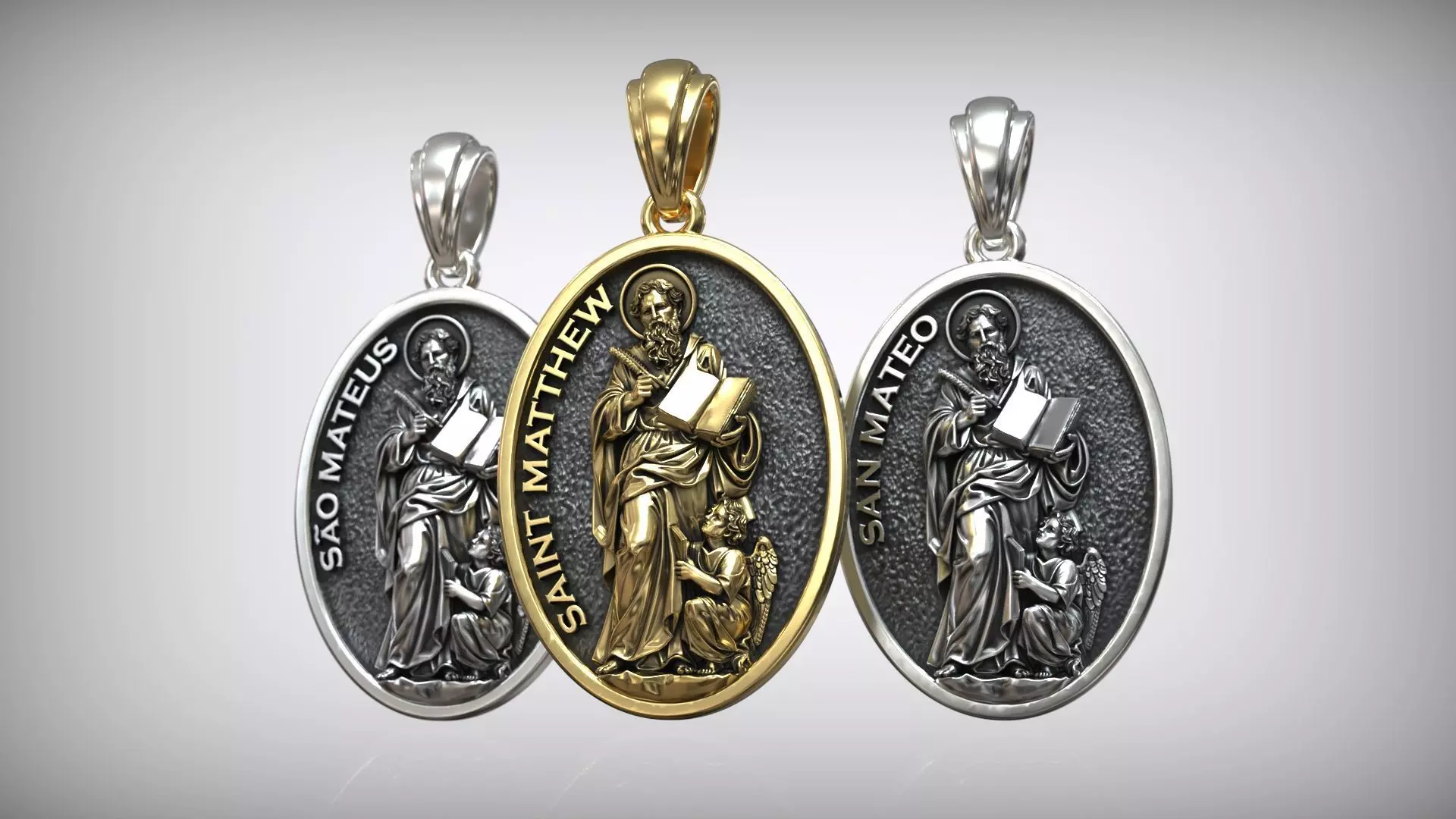 Saint Matthew Pendant, San Mateo, São Mateus Oval Medal Religious Jewelry Design