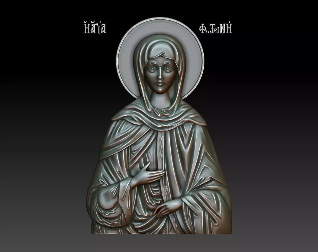 3d model Orthodox icon Saint Photina in high-detail 3D relief Suitable for CNC milling and 3D printing STL format, scalable to any size Compatible with ArtCAM, Rhinoceros, 3ds Max Ideal for religious souvenirs, furniture, jewelry, and interior décor This versatile model is a valuable tool for anyone looking to create beautiful, precise religious designs across a wide range of applications.