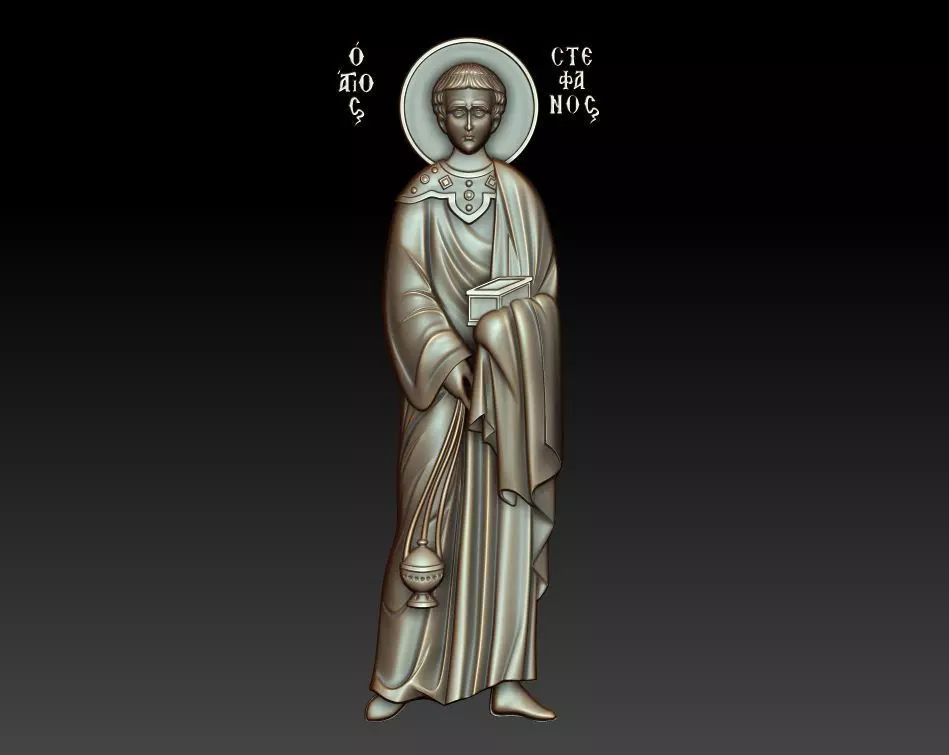 The 3D model of the Orthodox Icon of Saint Stephen ((Greek: Στέφανος,Πρωτομάρτυρας Στέφανος,translit. Stéphanos) is a detailed 3D relief designed for CNC systems and 3D printing, ideal for producing religious souvenirs, furniture accents, and custom jewelry. Provided in STL format, this model is easily imported into software like ArtCAM, Rhinoceros, and 3ds Max. Its scalability allows it to be resized for any project without losing detail, whether it's a small pendant or a larger wall décor piece.