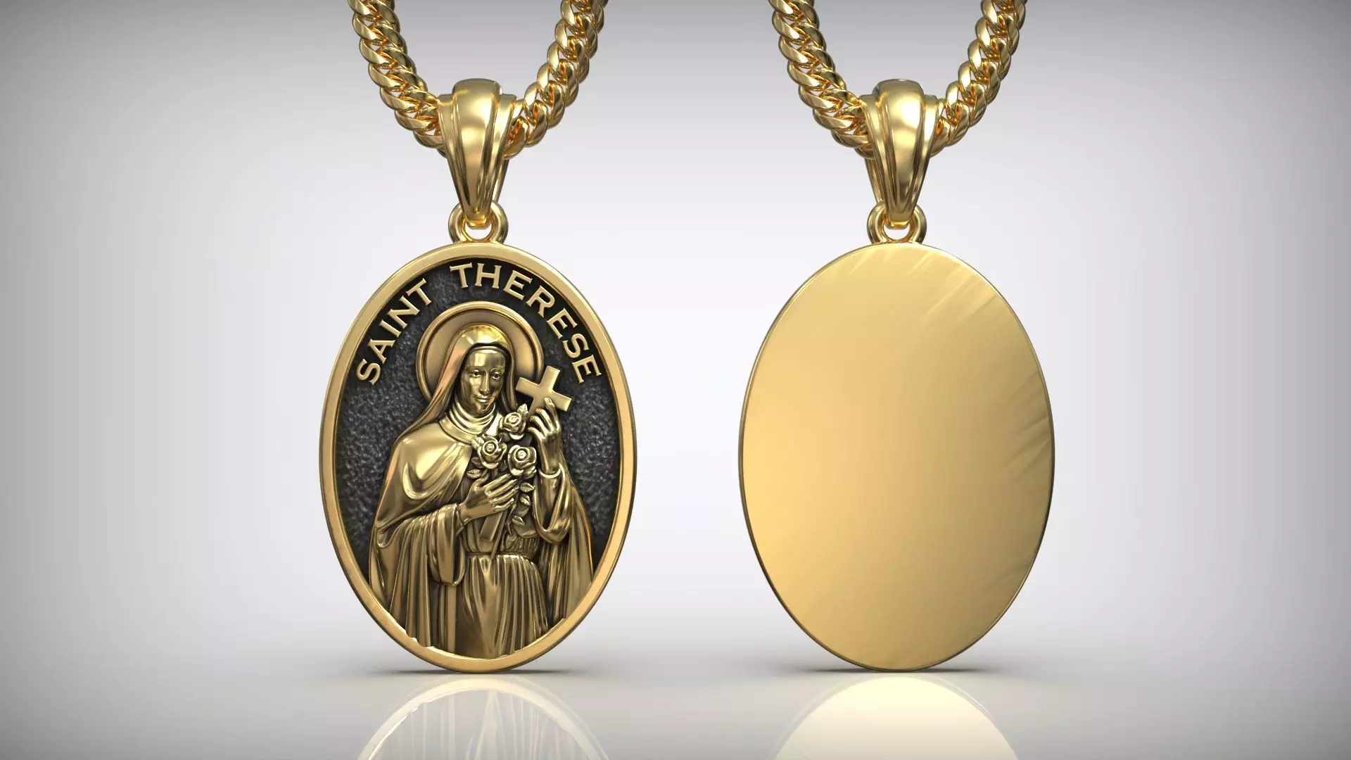 Saint Thérèse of Lisieux Medal Pendant Catholic Religious Jewelry 3D Model Detailed Religious Medallion