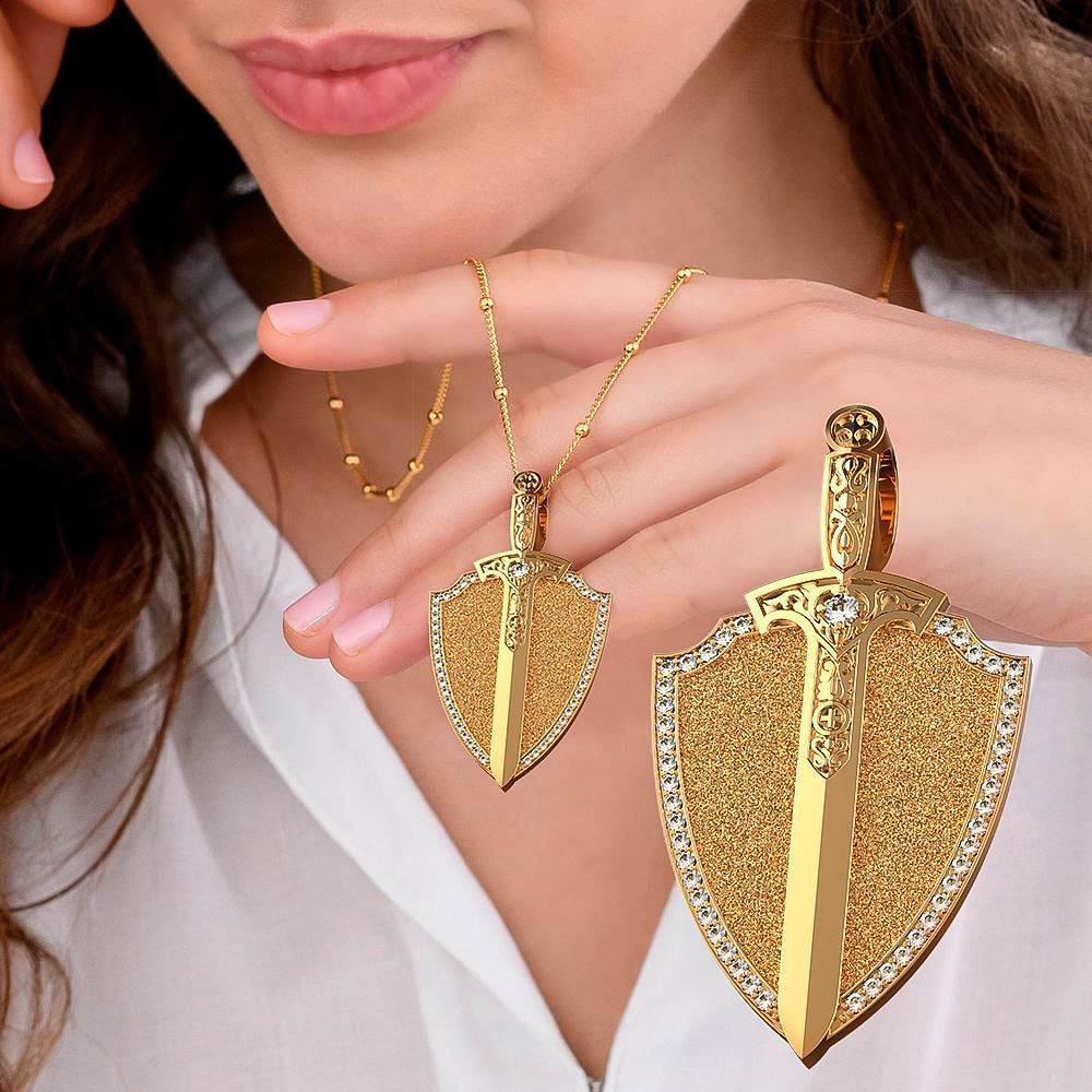 shield-sword St Nicholas pendant, two-sided pendant, on the one hand a prayer, on the second hand St. Nicholas the Wonderworker and the Holy Seven-shot Mother of God fixed and ready for productiondiamond round