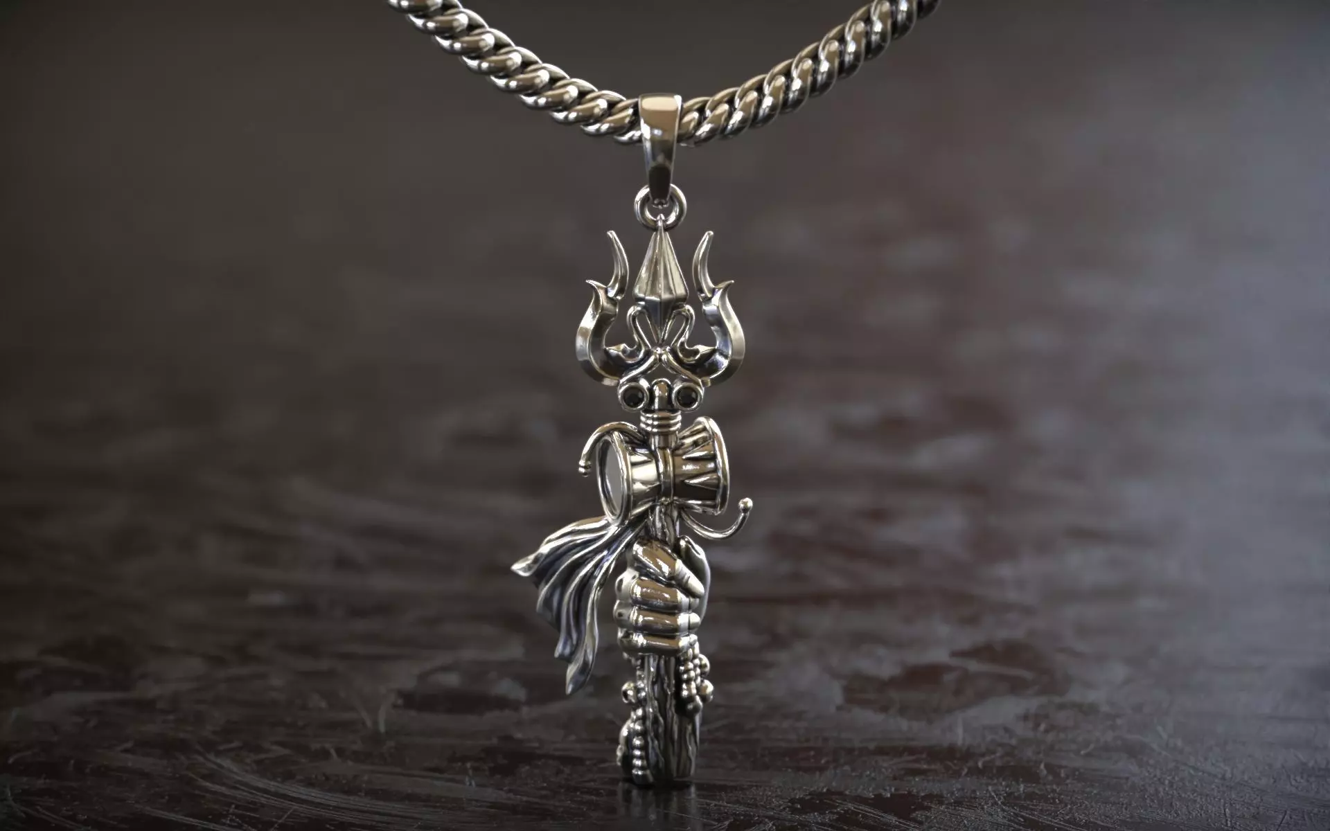 This is a high-quality, meticulously detailed 3D printable pendant featuring the sacred Trishul (Trident) of Lord Shiva, integrated with the Damru (Drum). The design represents divine protection, cosmic rhythm, and spiritual power. It is sculpted with sharp, clean lines and a hollowed bail for easy attachment to chains or cords, making it a perfect religious or spiritual statement piece.