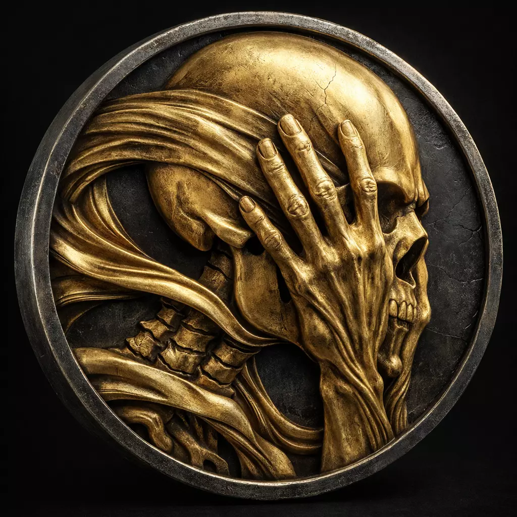 • Detailed skull with expressive hand composition• Artistic relief with organic flowing forms• Clean and balanced medallion design• Production-ready model