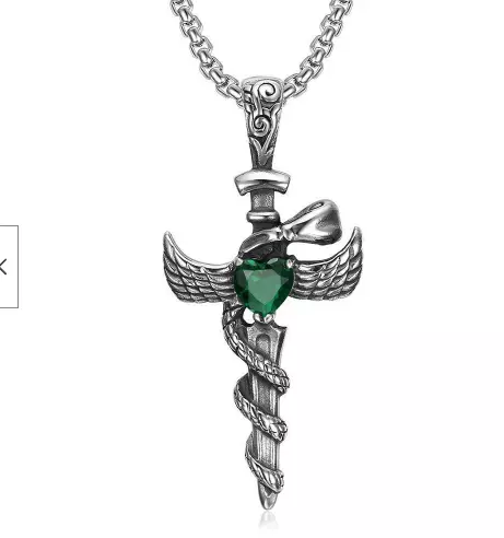Gothic snake cross designRed/green stone accentPerfect for both men and womenCan be worn with a variety of outfits