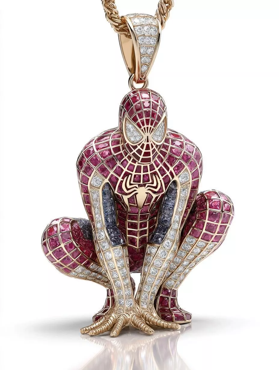 This Spider Hero Crouching Pendant 3D model features a dynamic superhero in a classic crouching pose with a detailed web-style suit. The design captures strength, agility, and street-style attitude, making it perfect for hip hop and statement jewelry pieces.