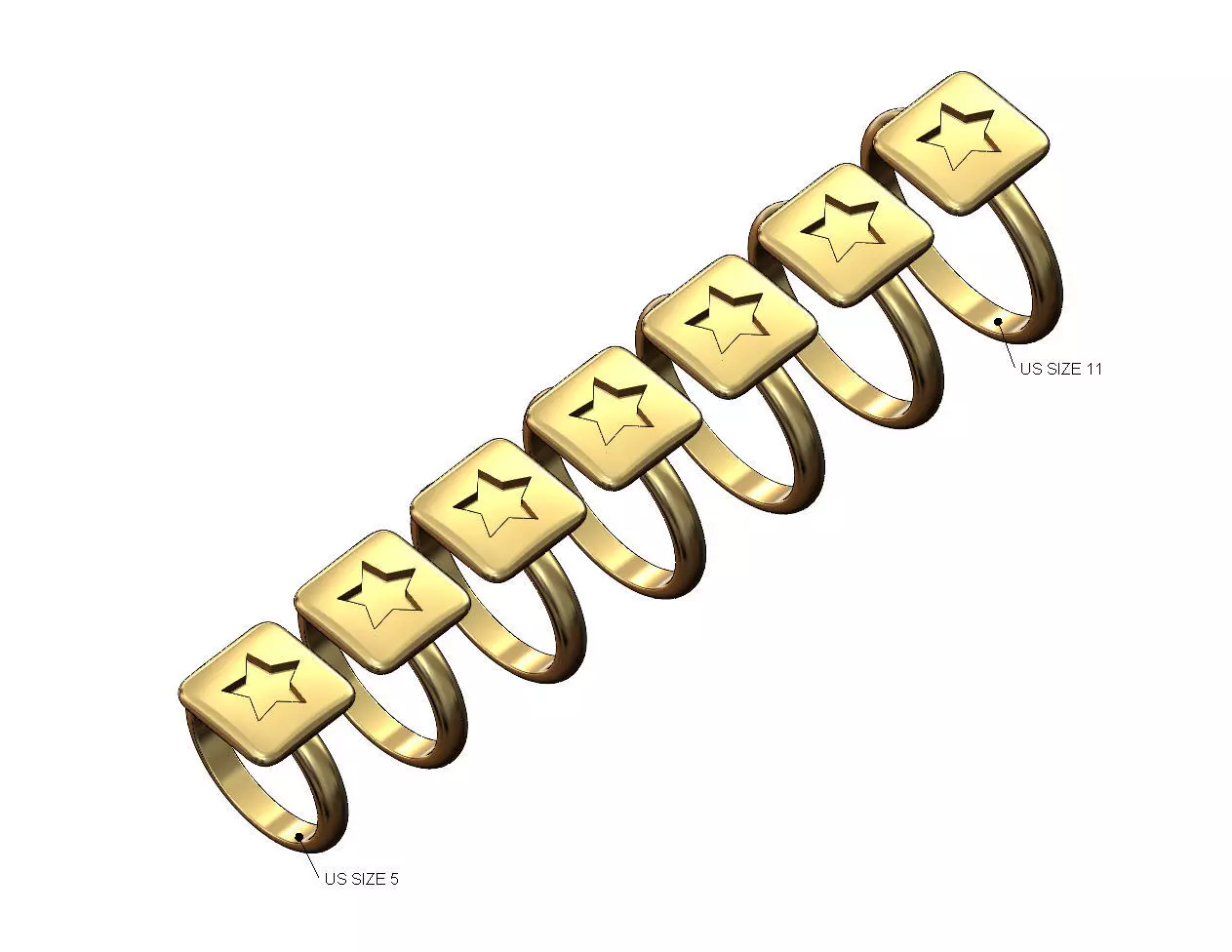 Star enamel engraving Square cushion top ring US sizes 5to11 3D print model