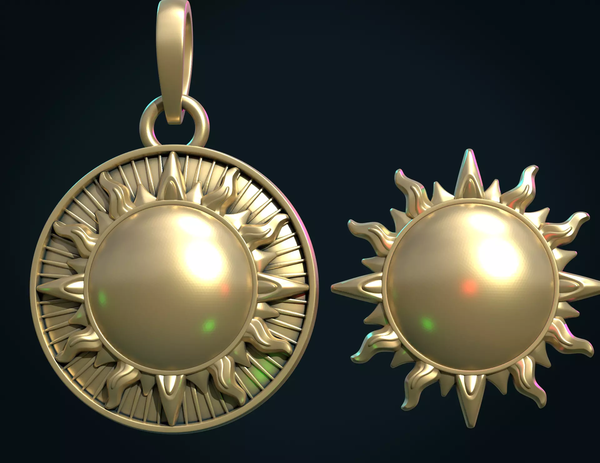 Print ready sun bas-relief and pendant.