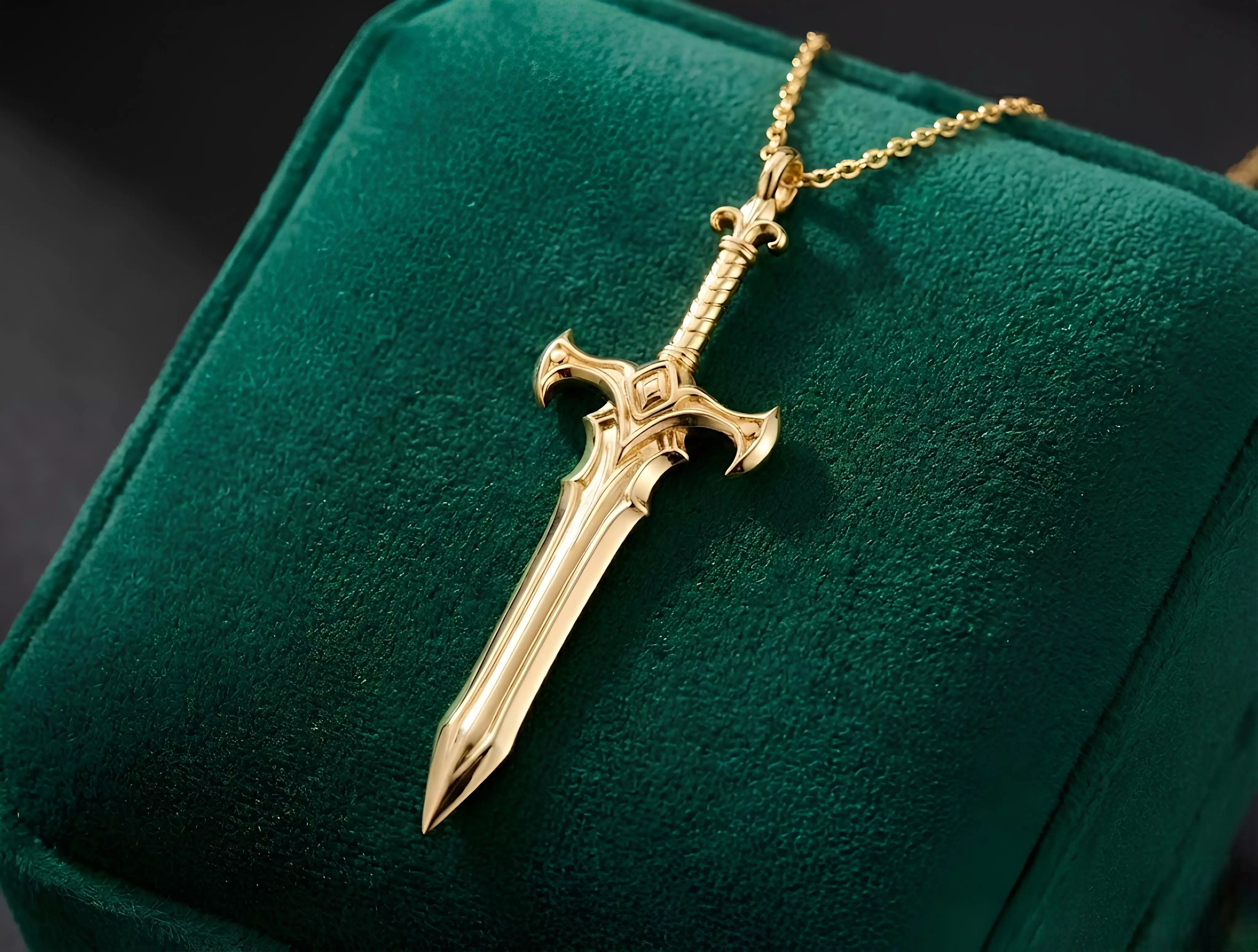 Carry the spirit of a legendary warrior with the Kingslayer dagger pendant. This masterfully sculpted piece features a high-detail hilt with intricate flourishes and a sharp, elegant blade inspired by medieval weaponry. Presented from multiple angles to highlight its slim, wearable profile and symmetrical craftsmanship, this pendant is finished in a moody, oxidized silver. A perfect accessory for fans of dark fantasy, tabletop gaming, or historical aesthetics.