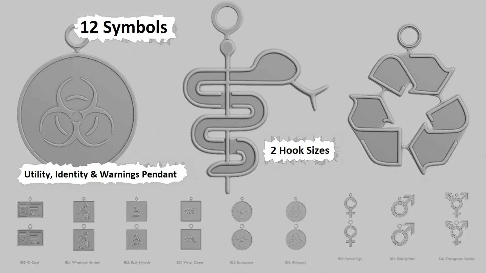 This STL pendant pack is a practical and punchy mix of everyday symbols, from the helpful to the hazardous — all inspired by OpenMoji.org and crafted into clean, 3D-printable charms. Whether you want to rep your identity, mark a bag with a biohazard (great for gym socks), or proudly hang a recycling badge on your backpack, this pack has it all.