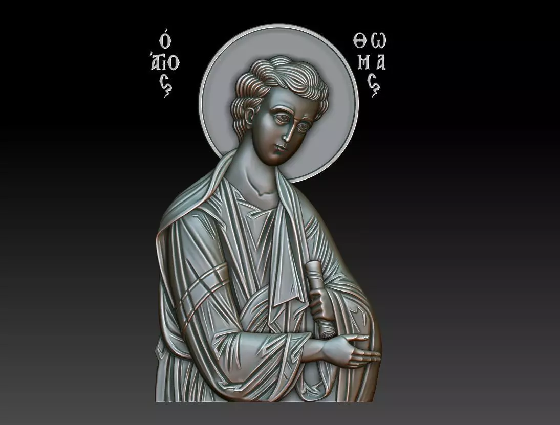 3d model Orthodox icon 3d model Apostle Thomas (also known as Didymus (Greek: Δίδυμος, romanized: Dídymos) . For milling on CNC machines or 3d printing. Can be used in the production of souvenirs, furniture, jewelry. Files in stl format, for import to artcam, rhinoceros, 3ds max, etc. You can scale the model to any size you need.3d model Orthodox icon 3d model Apostle Thomas, in high-detail 3D relief Suitable for CNC milling and 3D printing STL format, scalable to any size Compatible with ArtCAM, Rhinoceros, 3ds Max Ideal for religious souvenirs, furniture, jewelry, and interior décor This versatile model is a valuable tool for anyone looking to create beautiful, precise religious designs across a wide range of applications.This model is perfect for artisans and manufacturers creating religious-themed items such as iconography, church décor, or custom gifts. Its high level of detail ensures precise output when milled or 3D printed, maintaining a professional finish. It’s also ideal for woodworking, metal engraving, or resin casting.Ideal for CNC carving, 3D printing, and laser engraving. This model is perfect for creating religious wall plaques, personal devotional items, church décor, and spiritual gifts.