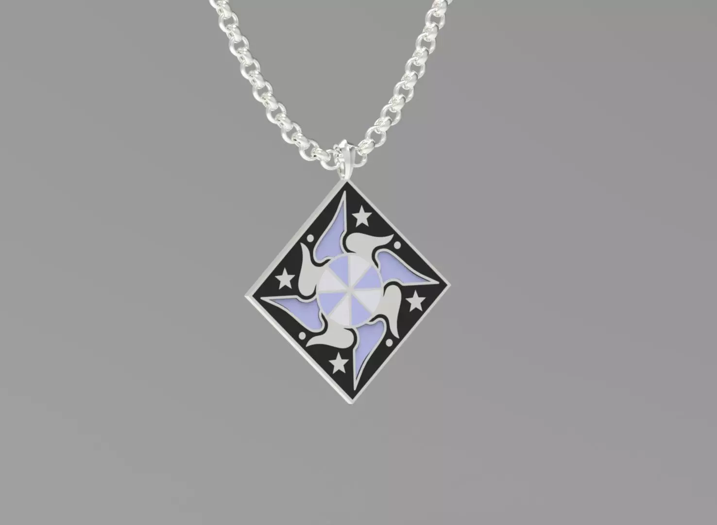 The model is built in Rhinoceros, and is prepared for 3D printing/milling. The badge has partitions for filling with enamel. The minimum thickness of the partitions is 0.35 mm. On the back side of the badge there is a textured surface, which after polishing will give a beautiful matte pattern on the metal surface. Also at the back there is a round area with a diameter of 5 mm for installing a lock/needle for wearing on clothing. The set also includes a pendant/pendant model in two versions, with and without a textured surface.