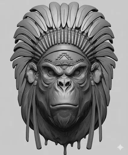This Tribal Gorilla Chief Pendant 3D Model showcases a powerful gorilla head wearing a detailed tribal feather headdress, symbolizing strength, leadership, and warrior spirit. The design blends tribal heritage aesthetics with modern hip hop jewelry styling, making it perfect for bold statement pendants and luxury urban jewelry collections.