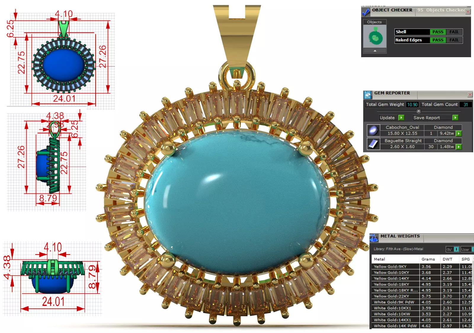 Turquoise Oval Baguette Diamond Sunburst Pendant model jp0380 3D print model