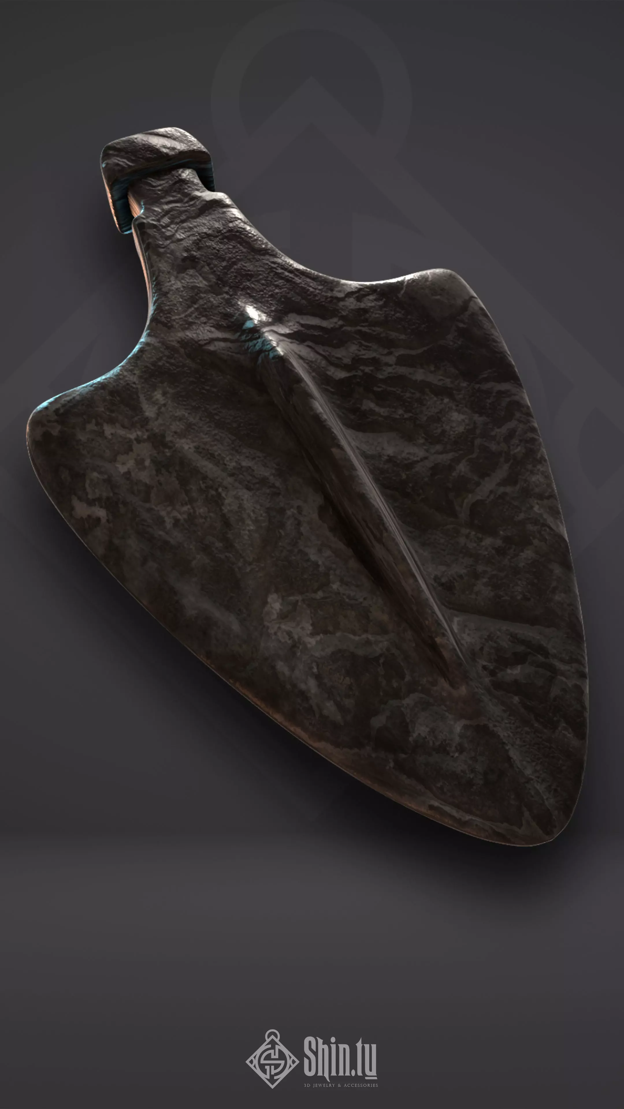 NOTE:The model you are seeing has textures applied as a reference to understand how the finished piece would look in a specific material: wood, iron, bone, glass, precious metals, etc. The model originally comes in a smooth presentation, the color and texture is simply a visual reference