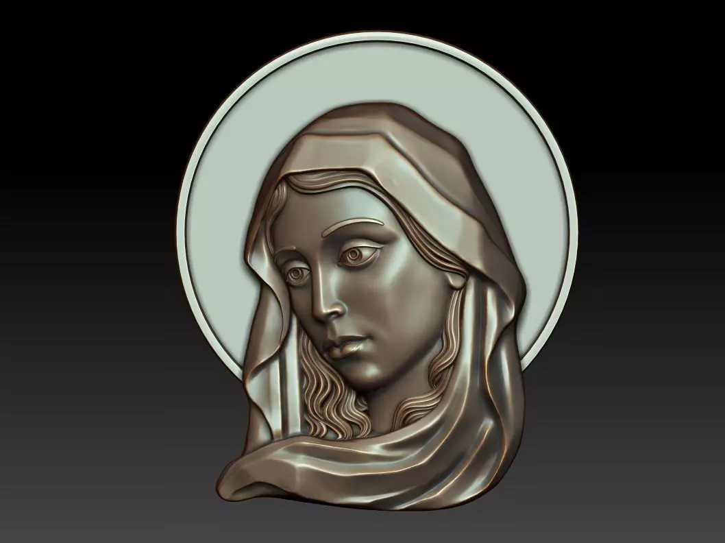 Virgin Mary Mother of God 3d relief for cnc-sistems and 3d printing. Can be used in the production of souvenirs, furniture, jewelry. Files in stl format, for import to artcam, rhinoceros, 3ds max, etc. You can scale the model to any size you need.