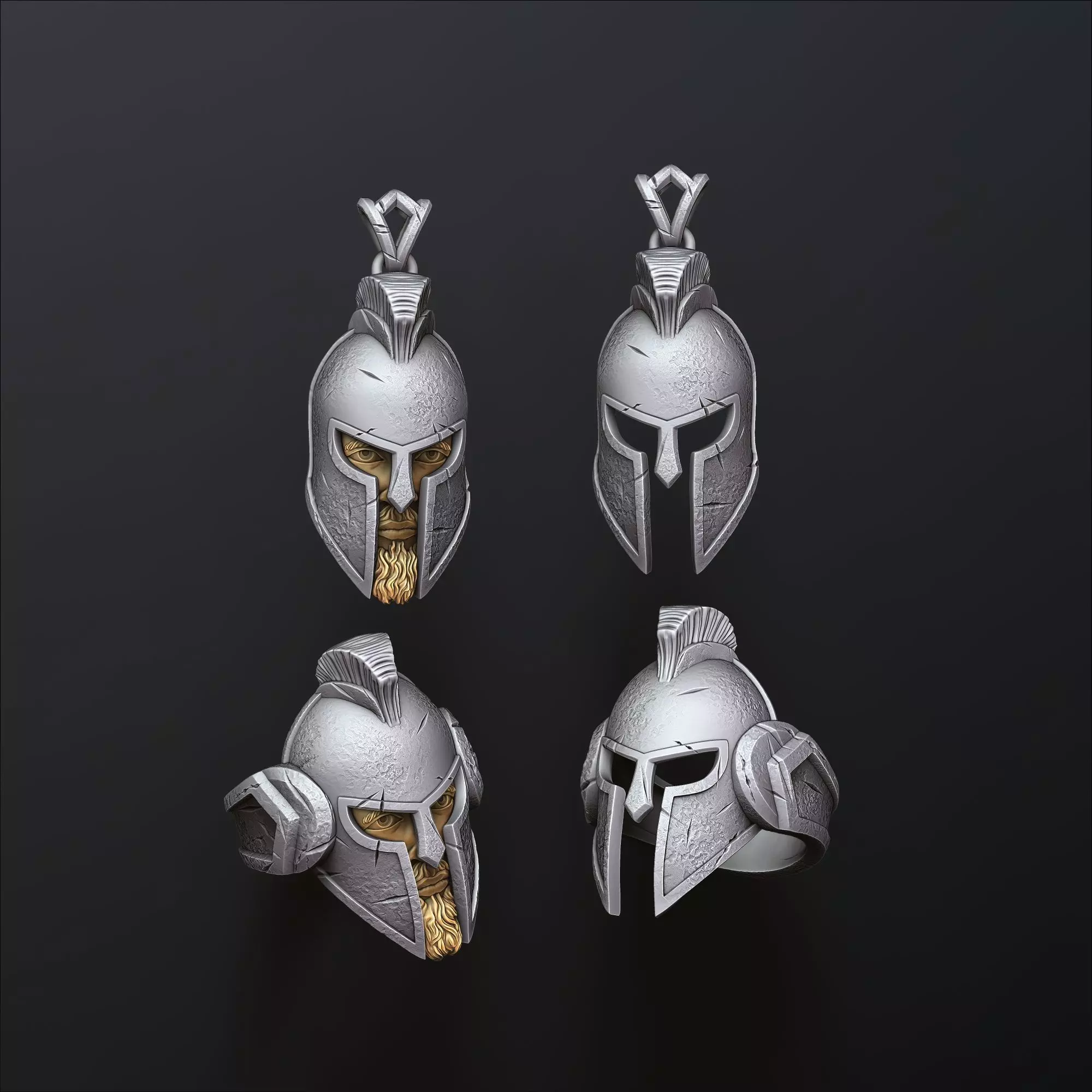292.Warrior Helmet pendant ring v2 collection 3D Print Model