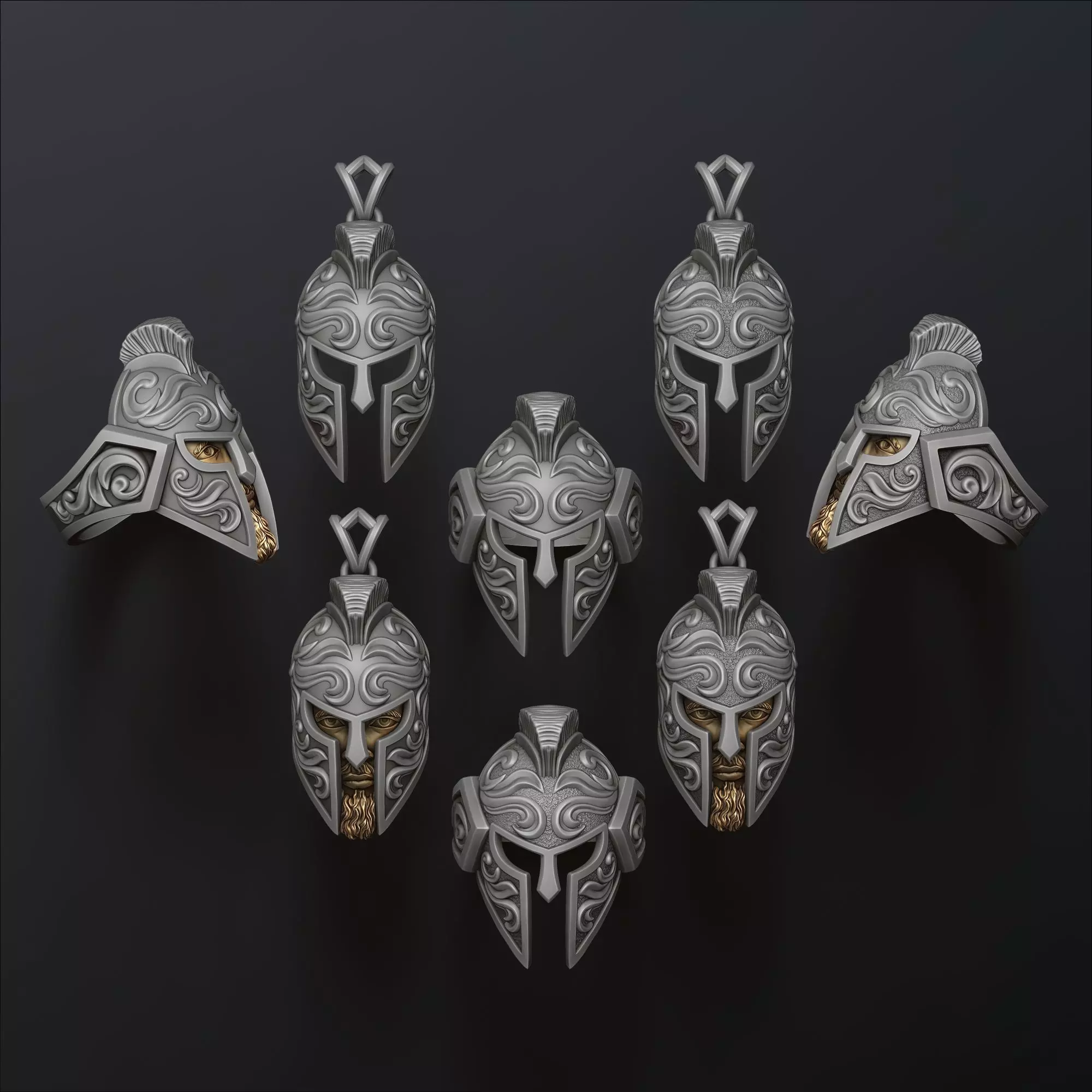 338.Warrior Helmet Pendant Ring v3 Collection