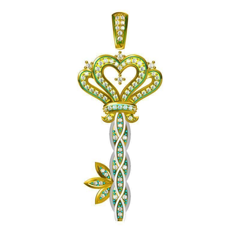 JCD Format White gold key shape pendant jewelcad 3D print model