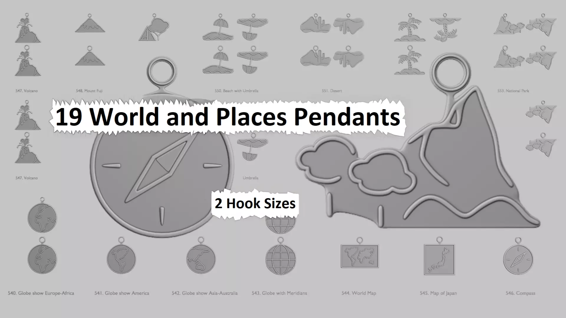 Each design includes two hook sizes (Standard & Large), with several featuring alternate hook positions for added printing and display flexibility. Use them as necklaces, keychains, zipper pulls, educational props, or souvenirs that don’t require a customs declaration. Included Designs:
