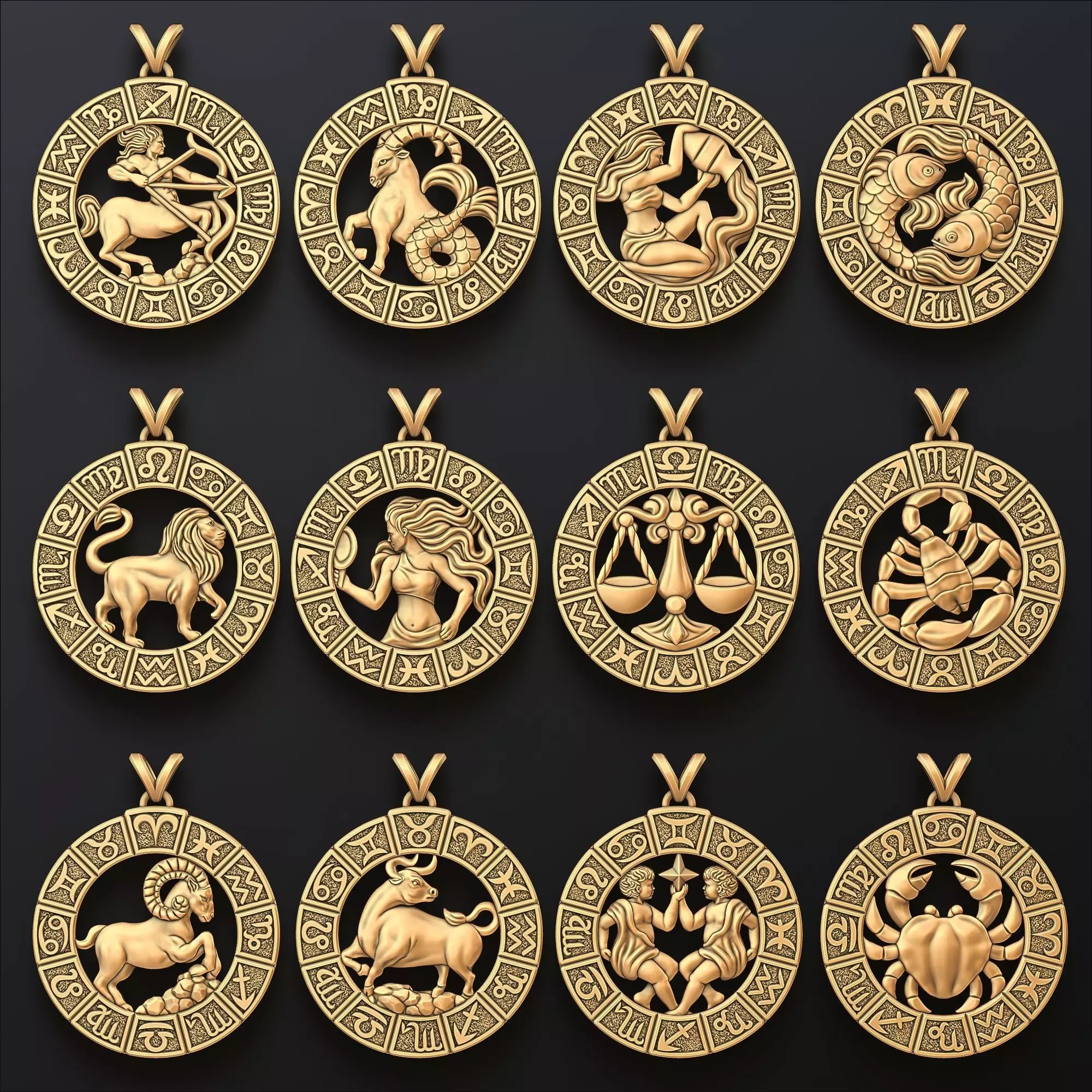 403.Zodiac Horoscope Pendant Set Pack 3D Print Models