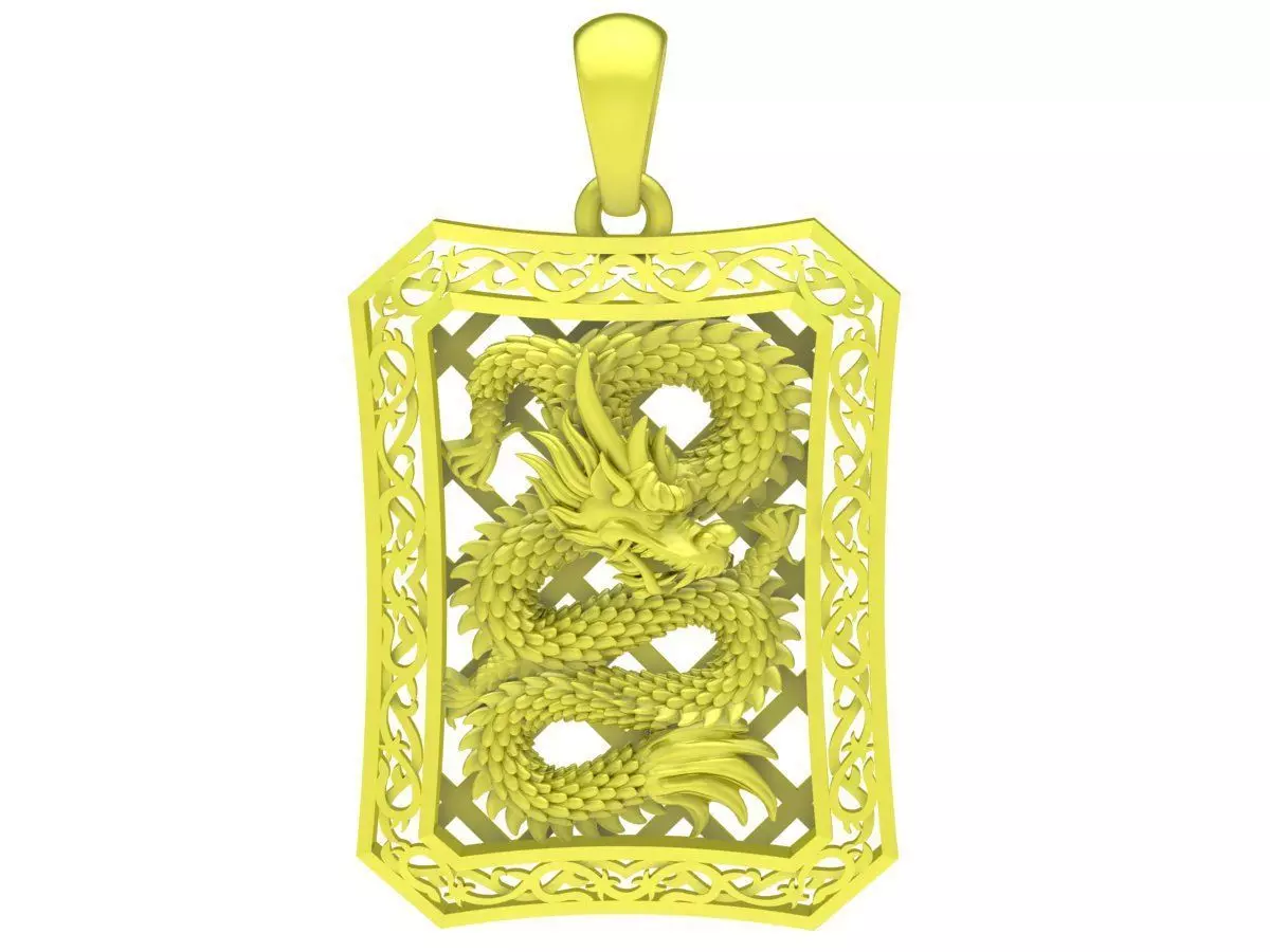 This 3D model features a beautifully sculpted dragon pendant framed inside an elegant rectangular border. The openwork lattice design enhances visual depth while keeping the pendant lightweight and casting-friendly. Detailed scales, smooth curves, and clean ornamental patterns are carefully sculpted to deliver a striking Asian aesthetic suitable for luxury jewelry.