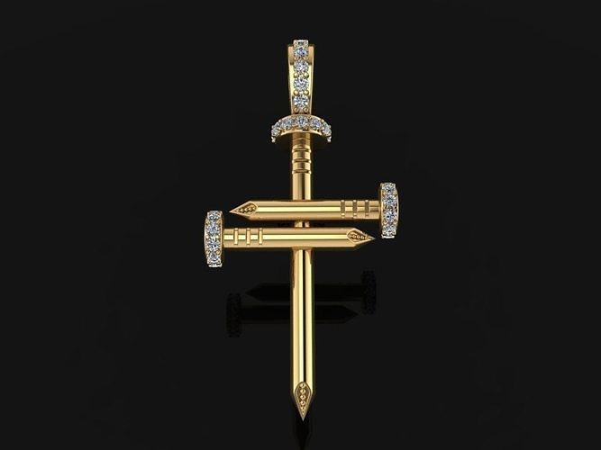 Large Size Diamond Nail Cross Pendant