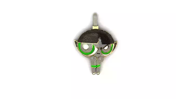 High-quality 3D model of a luxury pendant, inspired by a stylized green-eyed character. Designed for fine jewelry production, this model is ready for 3D printing and casting.