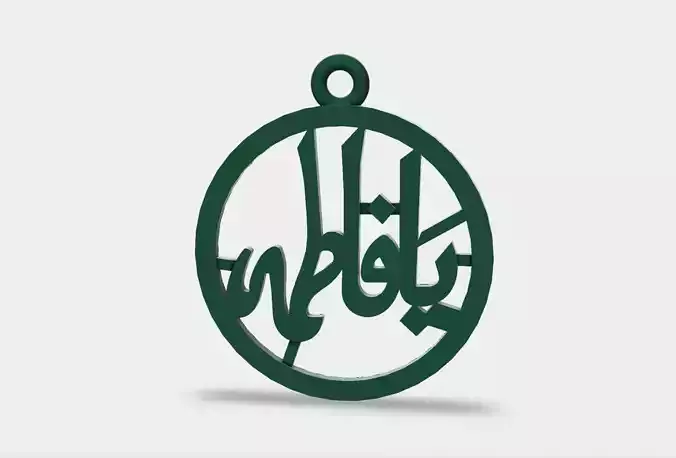 The centerpiece of the pendant is a round-shaped disc adorned with the Arabic phrase يا فاطمة, transliterated as Ya Fatima. Ya is an Arabic term used to call upon someone, and Fatima refers to the revered figure of Fatima, who holds a significant place in the hearts of Muslims around the world.