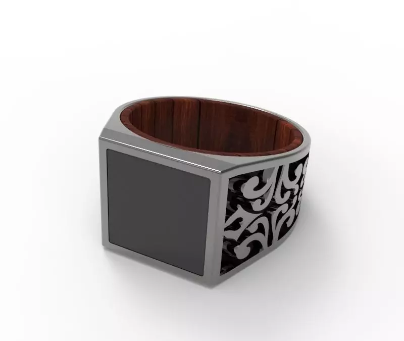 0547 Mens Ring - Wood-Metal-Enamel 3D print model