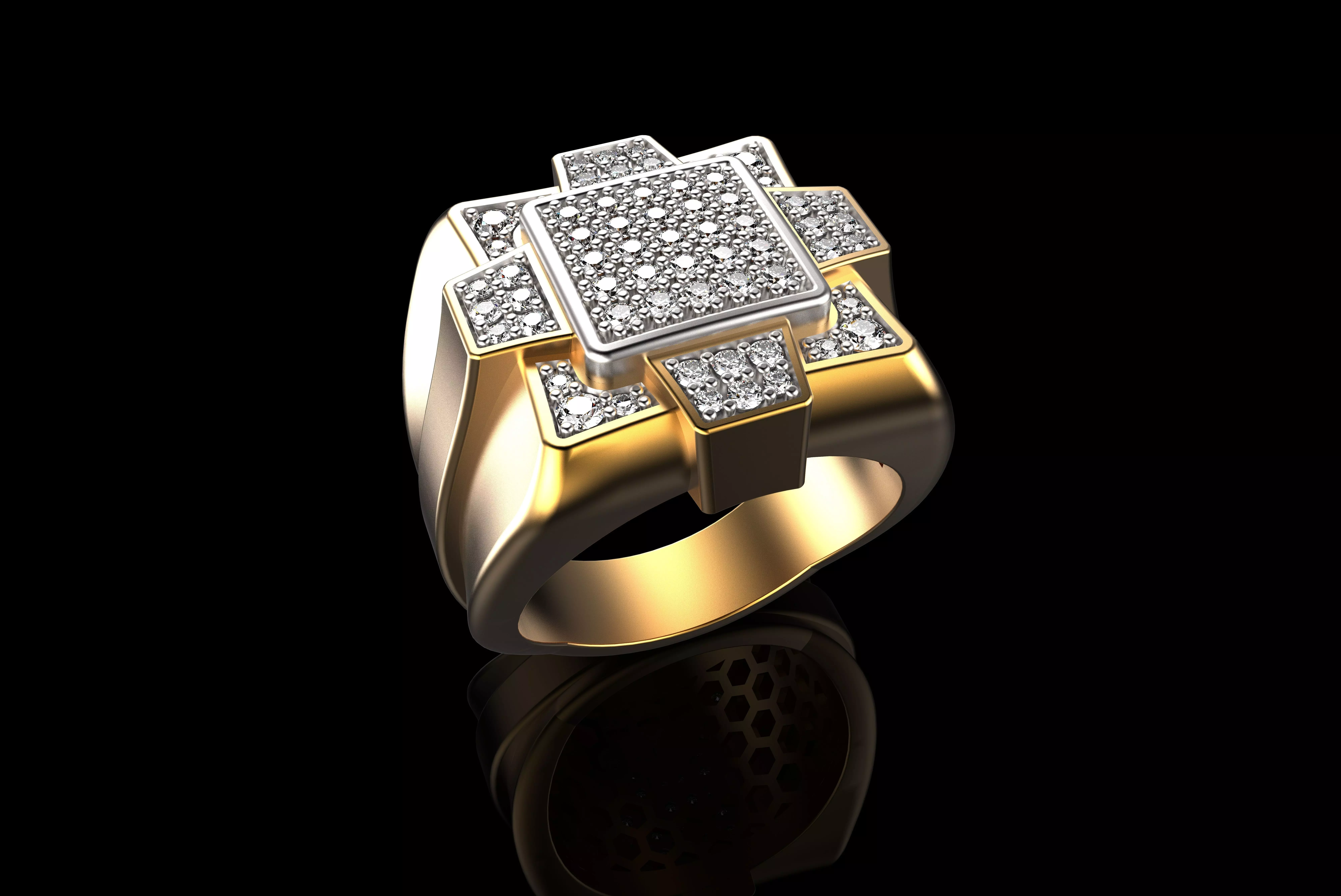 18K Yellow Gold Diamond Rings for Men 5 3D print model