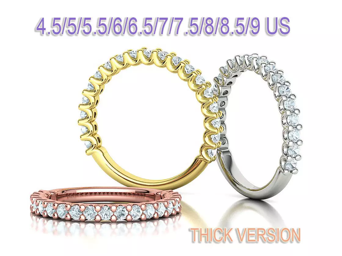 • Bespoke Half Eternity Diamond Band Ring Thick Version(0.96mm prongs) 2mm diamonds 19-gems version 3dprint model for Jewellers.