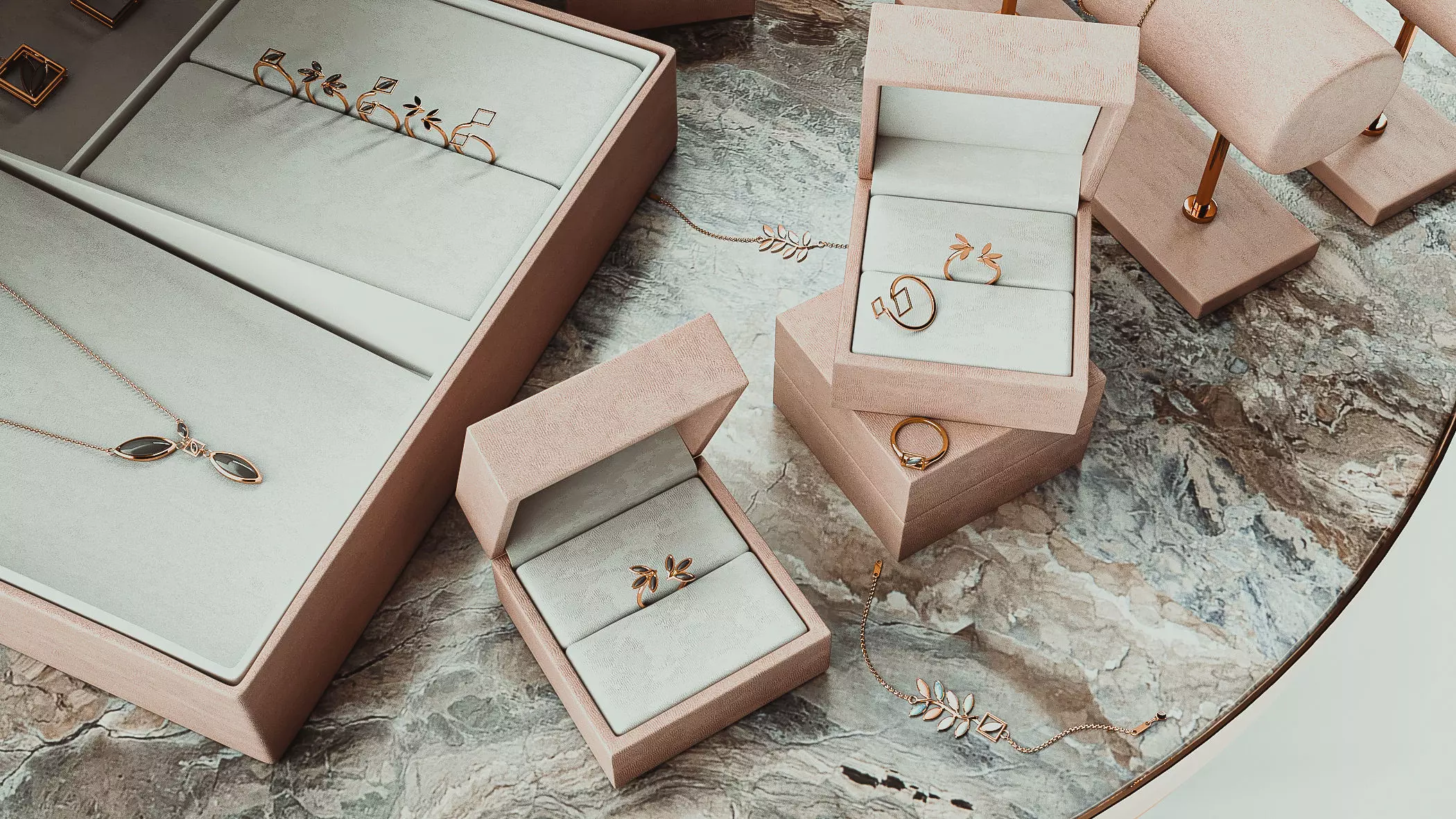 This 3D printable jewelry set contains 5 model Rings in USA size 5, 5.5, 6, 6.5 ,7 three bracelet model two earring model and necklace following by STL files, 3dm (Rhinoceros version 5 and subd version 7 save as Rhino 6) with complete metal weight report . This is a first Piece of a new jewelry collection by Farjamfar design studio, Including eight jewelry sets, jewelry display and jewels table. This collection has inspired by nature such as, plants, leafs, water lily and fruits, from gold jewelry design to royal jewels. Each set offers several rings, bracelets and earrings in addition necklesses. Each set shares some basic 3D models of chain, clips , studs, findings. The 3D files has been designed in RhinoCeros version 7 With SubD modeling system and jewelery has been designed , managed and analysed in RhinoGold vesrion 6.6. All the files has been checked by Netfabb. The file contains native software file Rhinoceros 7 ( Subd modeling - saved as Rhinoceros 6) , Booleaned 3D model in Rhino 6, STL (Stereolithography) file for 3D printing, Fbx format for 3D modeling and rendering and also reports of jewels.