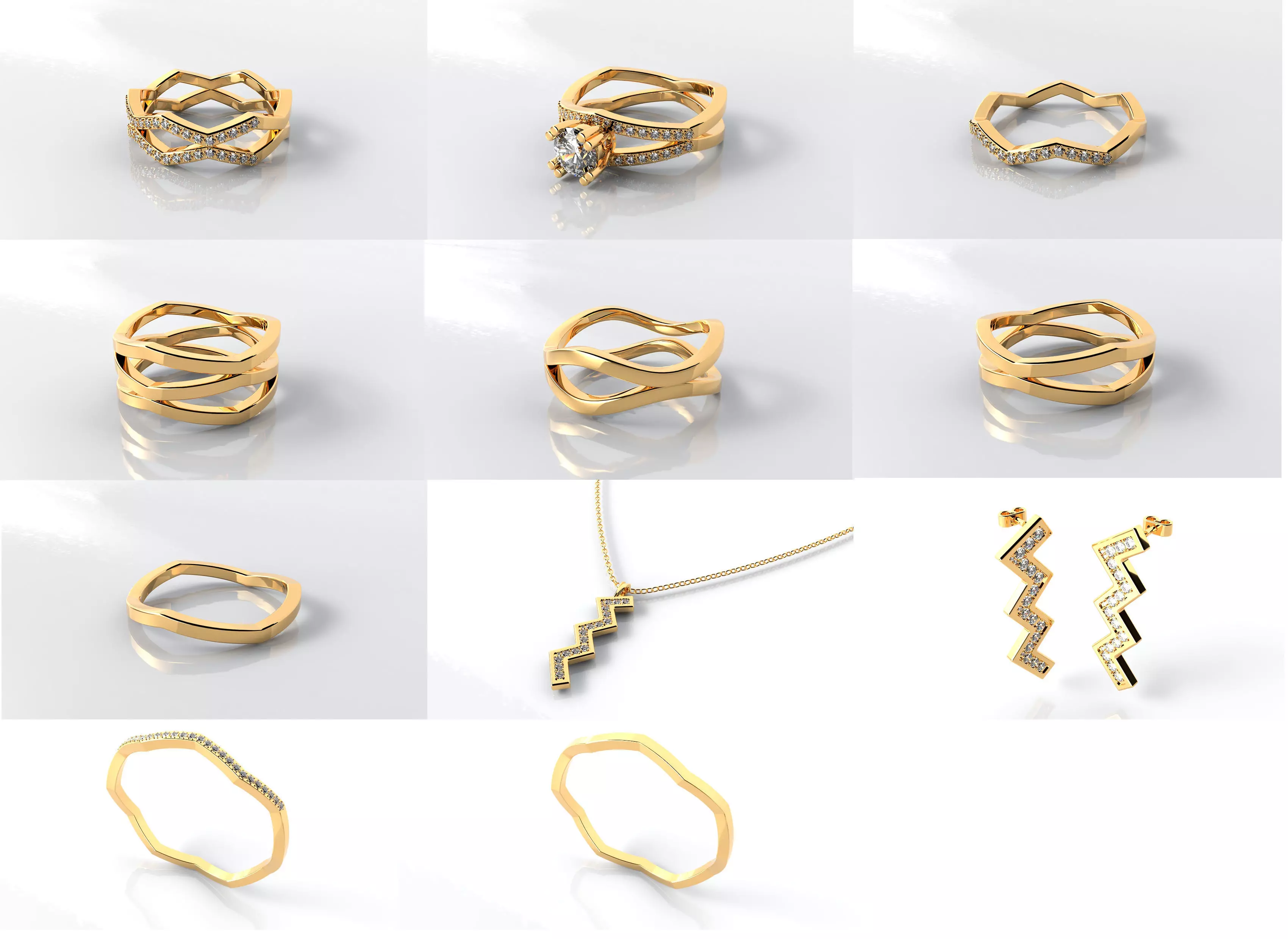 This well organized jewelry collection contains seven 3D printing rings in USA sizes 5,5.5,6,6.5,7 . Two model bracelets in sizes small, medium and large . Earring 3D print model and nacklaces. file includes STL format , fbx, Stone and metal reports. ( No map because of metal and 3D printing file)The 3D files has been designed in RhinoCeros version 7 With SubD modeling system and jewelery has been designed , managed and analysed in RhinoGold vesrion 6.6. All the files has been checked by Netfabb. The file contains native software file Rhinoceros 6 (saved as Rhinoceros 5) , Booleaned 3D model in Rhino 6, STL (Stereolithography) file for 3D printing, Fbx format for 3D modeling and rendering. This is a third Piece of a new jewelry collection by Farjamfar design studio, Including eight jewelry sets, jewelry display and jewels table. This collection has inspired by nature such as, plants, leafs, water lily and fruits, from gold jewelry design to royal jewels. Each set offers several rings, bracelets and earrings in addition necklace. Each set shares some basic 3D models of chain, clips , studs, findings.