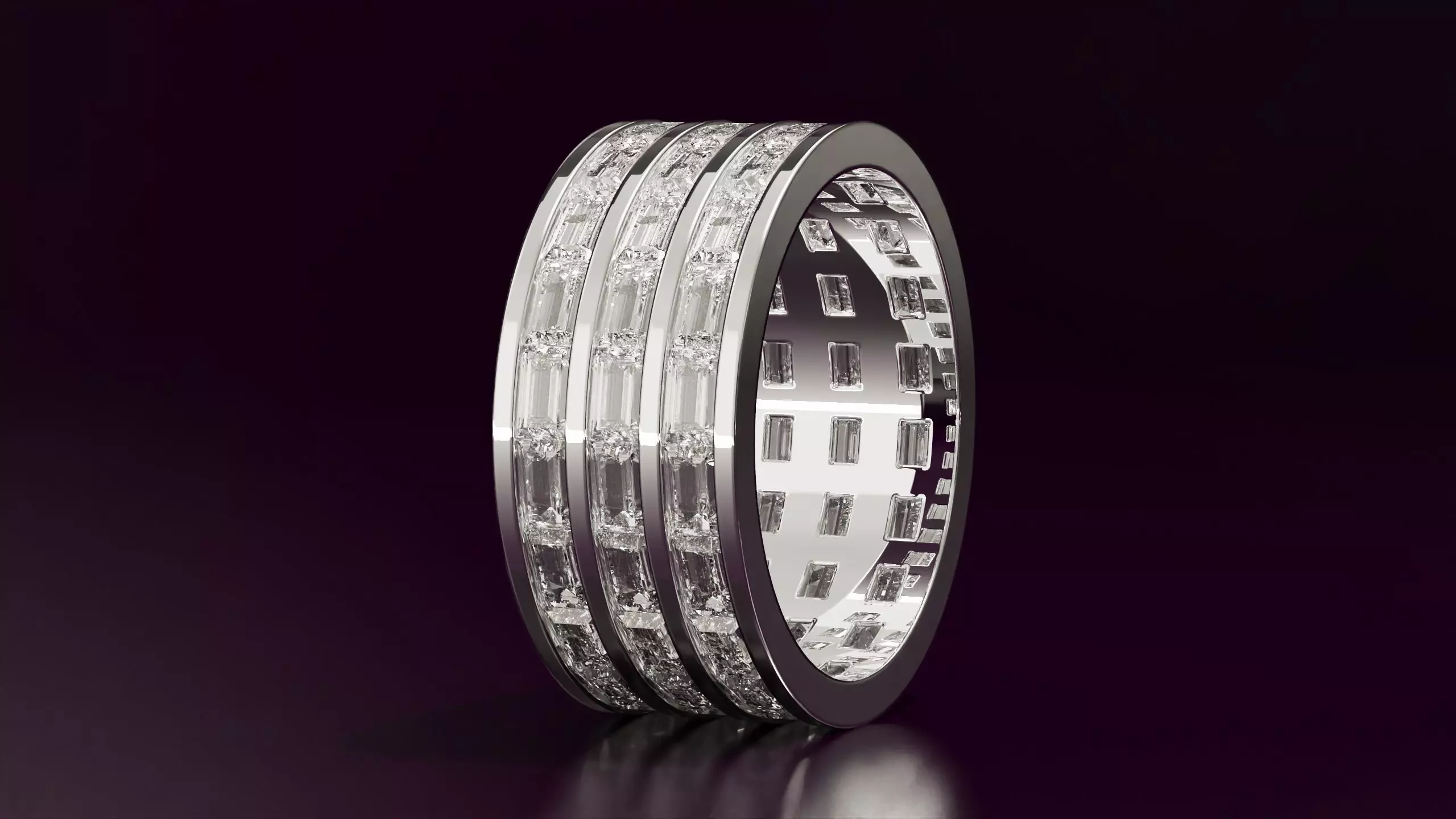 Design a timeless, elegant piece with this 3line channel set baguette straight cut eternity ring, precisely modeled for EU size 54, Ideal for professional 3D printing and fine jewelry production.